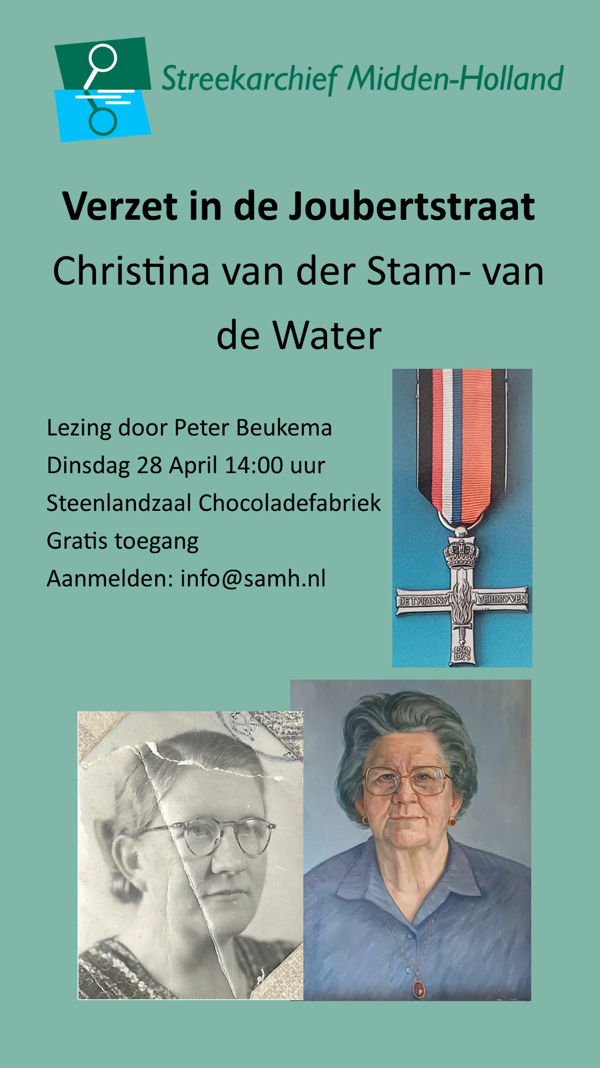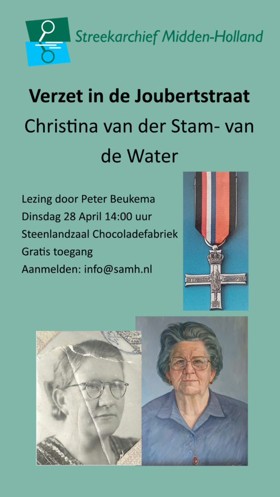 De Goudse Christina (*1907, †1985) is vanaf 1942 actief met hulp aan voornamelijk Joodse onderduikers. Vanaf april 1943 heeft zij permanent twee Joodse onderduiksters in huis. Na arrestatie door verraad in februari 1944 wordt zij vastgehouden in Rotterdam. Door gebrek aan bewijs wordt Christina onder vele bedreigingen na vier weken vrijgelaten. Zij zet haar verzetswerkzaamheden voort. De beide onderduiksters blijven tot het eind van de oorlog in haar huis.